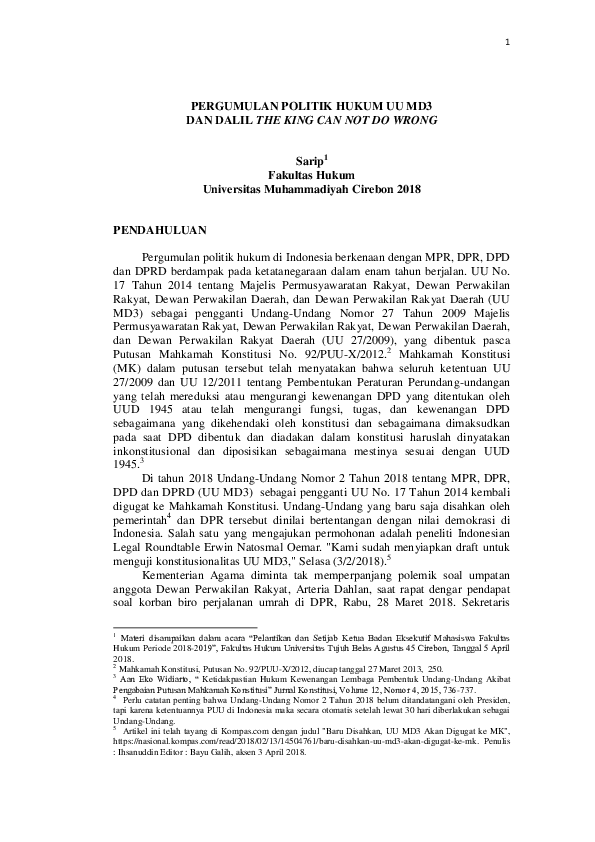 download with emailPERGUMULAN POLITIK HUKUM UU MD3 DAN DALIL THE KING CAN NOT DO WRONG