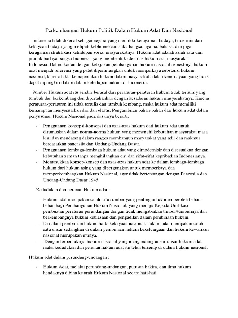 - Dengan terbentuknya hukum nasional yang mengandung unsur-unsur hukum adat,